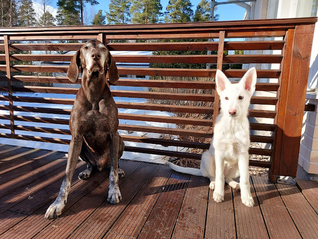 - Olen aloittanut koirakoulun. Käyn sunnuntaisin Raisiossa opiskelemassa koiranpennulle sopivia taitoja, kuten käskystä istumista ja maahanmenemistä, paikallaoloa, luopumista sekä muita hyödyllisiä juttuja. Meidän ryhmässä on vain kaksi muuta koirakkoa, joten tällaisina pandemia-aikoinakin voimme käydä hallilla treenaamassa.